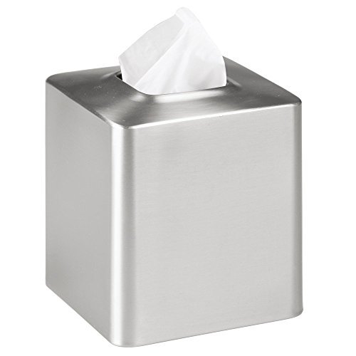 mDesign Facial Tissue Box Cover/Holder for Bathroom Vanity Countertops - Brushed Stainless Steel