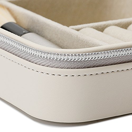 VANDER Small Travel Jewelry Box Portable Storage Case Organizer for Rings Earrings Bracelet Necklace Ear Stud (Beige with Mirror)