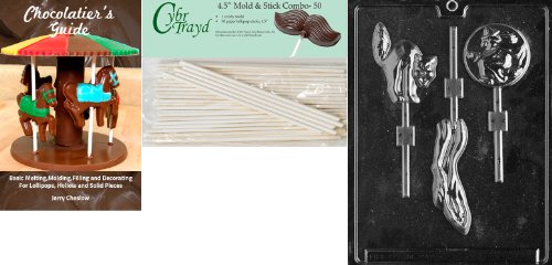Cybrtrayd 'Ghost, Cat, Witch Lolly' Halloween Chocolate Candy Mold with 50 4.5-Inch Lollipop Sticks and Chocolatier's Guide