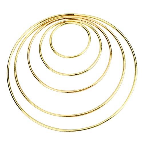 eBoot Set of 5 Pieces Assorted Metal Hoops Metal Rings for Dream Catcher, 2 Inch, 3 Inch, 4 Inch, 5 Inch, 6 Inch (Gold)