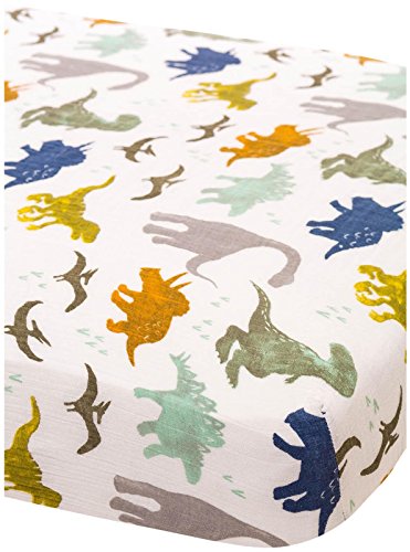 -. Title : Little Unicorn Cotton Muslin Fitted Sheet - Dino Friends, Blue, Green, Navy