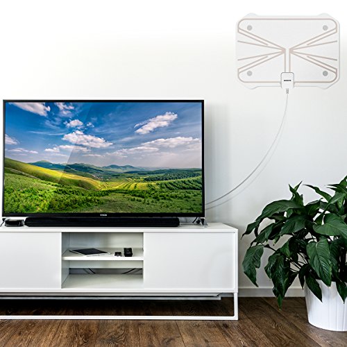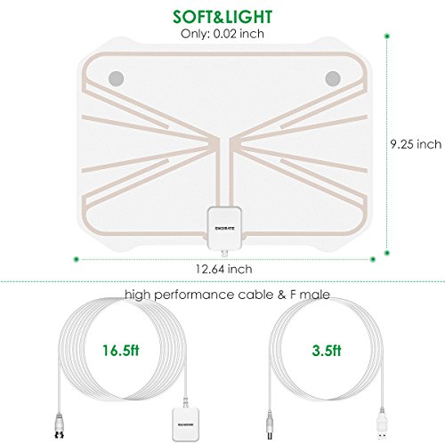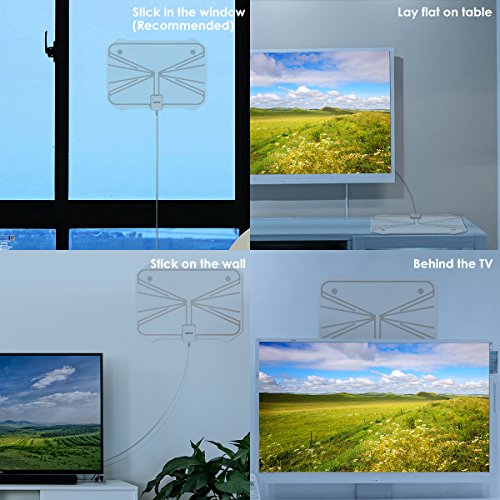 - 50 MILES RANGE ,16.5FT CABLE:Fancy ,slim and light with thick for 0.02".The 2M sticker makes it easy and fast stick on the wall or windows or anywhere you like (place with better reception ).Keep the best signal transmission Protection against interference with other signals.You can enjoy your favorite TV shows ,football games and NBA without any impact.