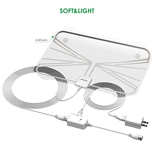 Digital Antenna, Best HDTV Antenna1080P Advanced 50 Miles Range TV Antenna Indoor, Super Thin For 0.02”, 16.5ft Coax Cable With Detachable Amplifier Signal Booster ( With UL Certificate)