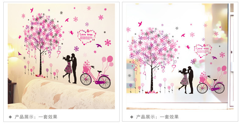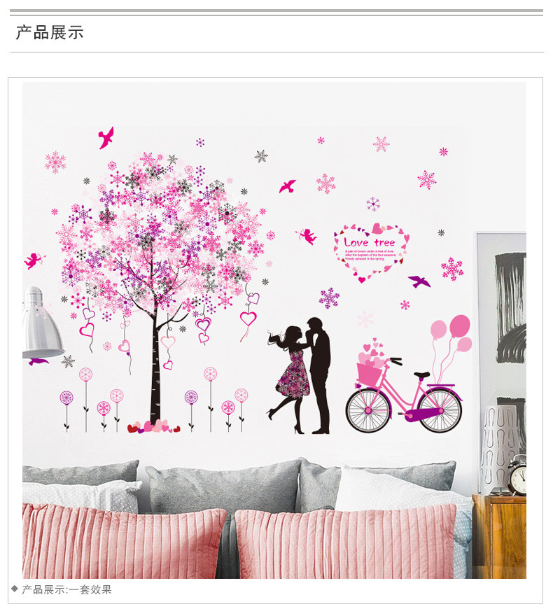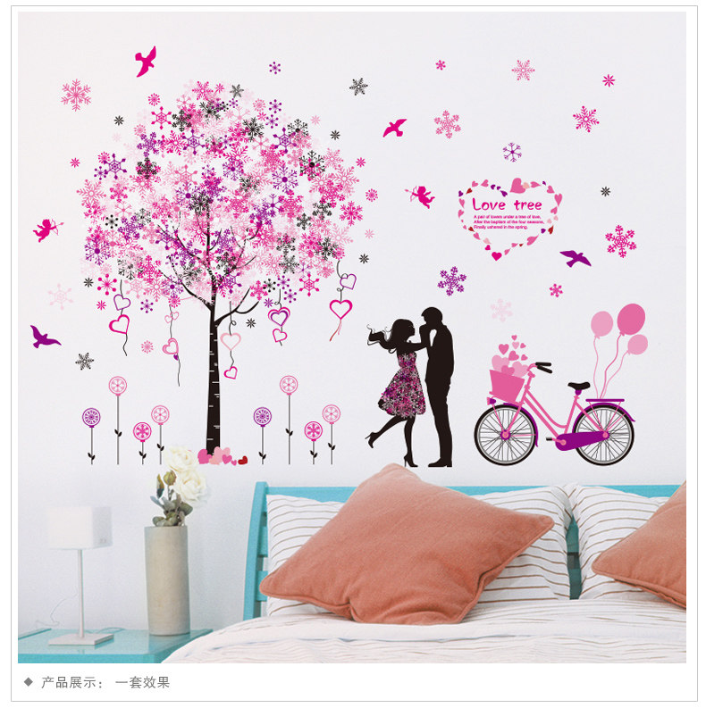 温馨床头墙纸自粘卧室客厅墙壁装饰品婚房布置浪漫情侣贴纸自行车