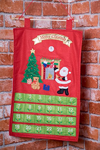 Christmas 24 Day Hanging Cloth Advent Calendar | Red and Green Santa Claus Merry Christmas Design | Traditional Holiday Christmas Decor Theme | Perfect for Home or Office | Measures 22.5" Tall