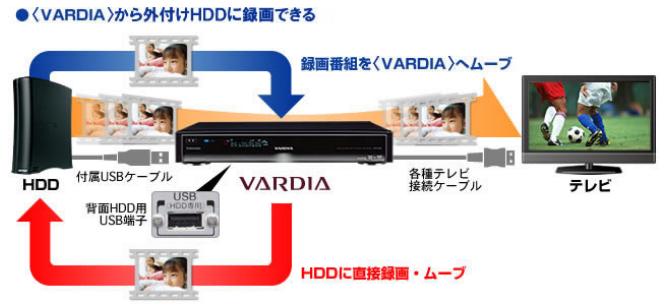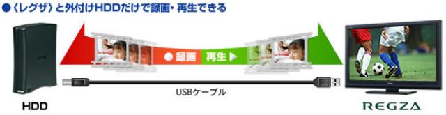 ???東芝製ハイビジョン液晶テレビ REGZAシリーズ、東芝製ハイビジョンレコーダー VARDIAシリーズ対応。外付けHDDへの録画に対応するモデルと接続して、ハイビジョン放送を録画が可能。