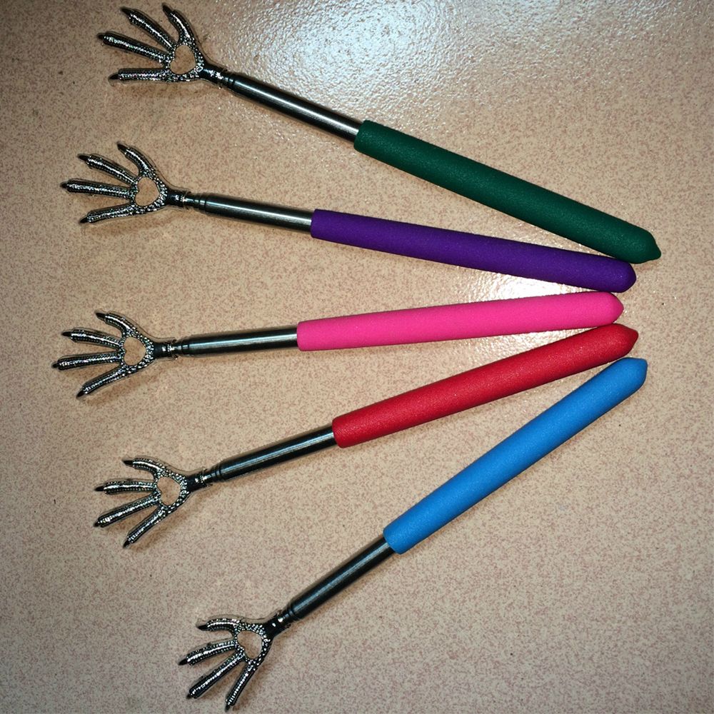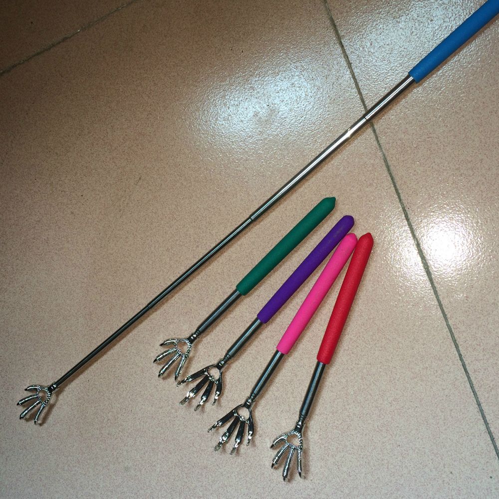 Color: Red? Blue? Green Purple? Rose Material: stainless steel Size: Minimum Length:21.7cm/8.5" ???????? Maximum Length:58cm/22.8" Package Including: 1 x claw telescoping ultimate stainless steel back scratcher