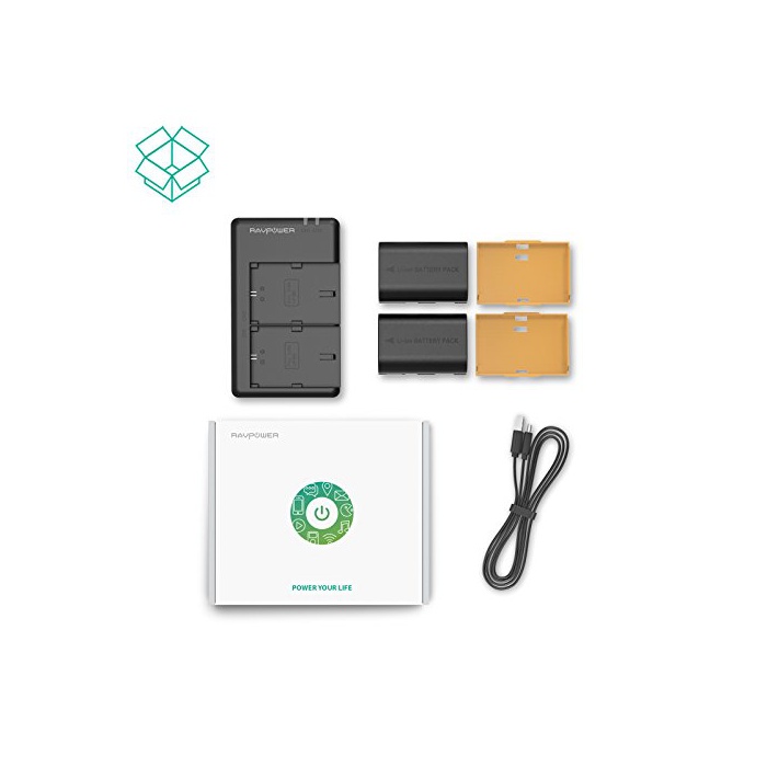 RAVPOWER 배터리 팩 RAVPower LP-E6 LP-E6N 호환 배터리 2개 + 충전기 세트 ( 대용량 2000mAh USB 급속 충전 ) EOS 5D Mark IV 고, EOS 80