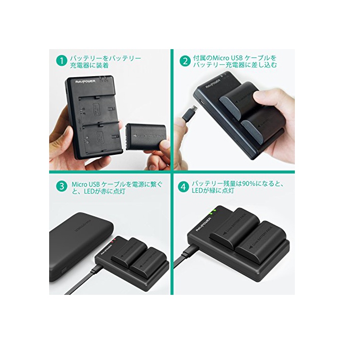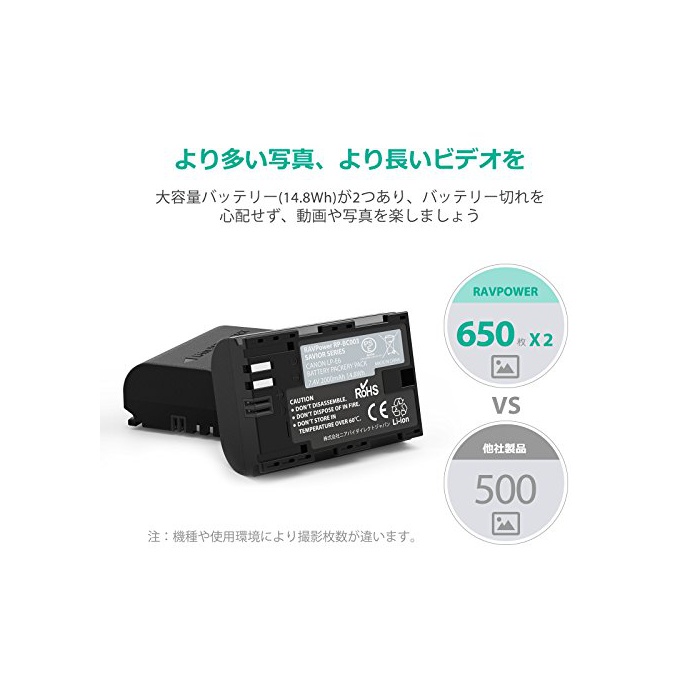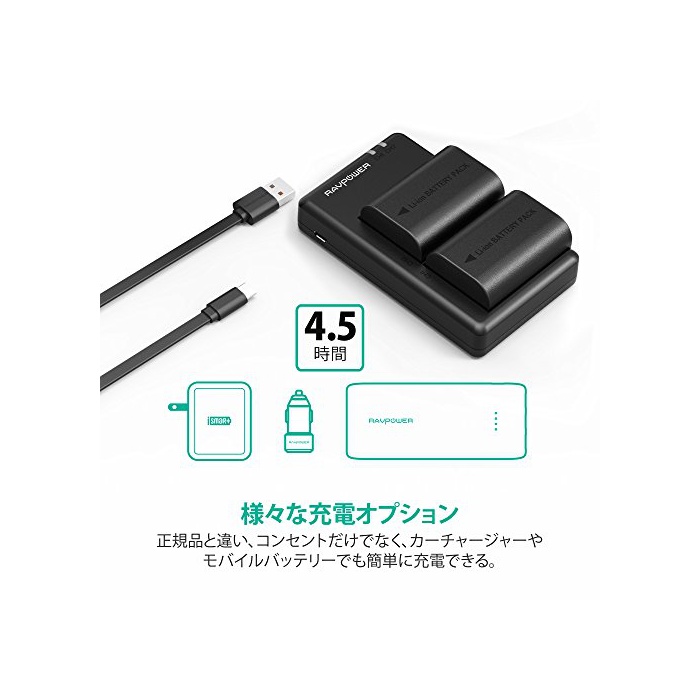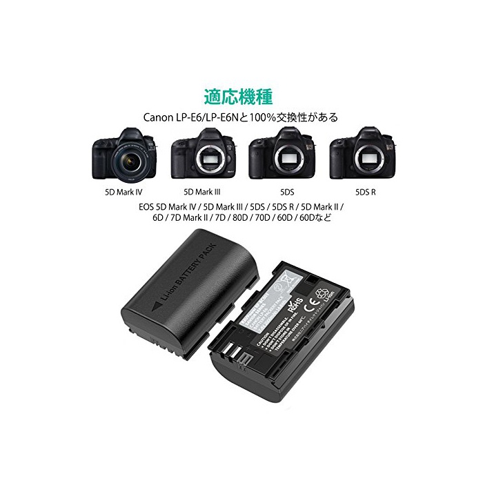 원본상품명: バッテリパック RAVPower LP-E6 LP-E6N 互換バッテリ 2個 + 充電器 セット ( 大容量 2000mAh USB 急速充電 ) EOS 5D Mark IV 、 EOS 80