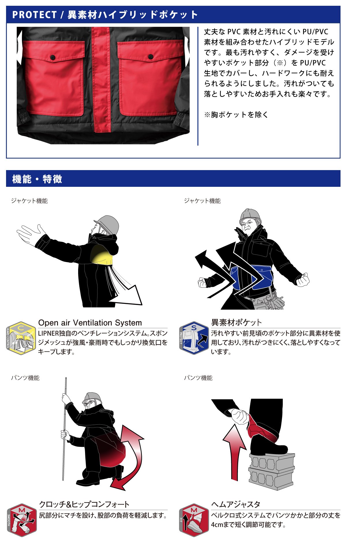 Steam generated by heavy work is discharged by LIPNER's own ventilation system (OVS) on the back.
