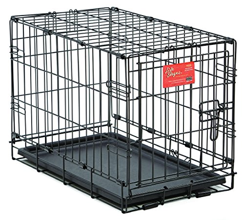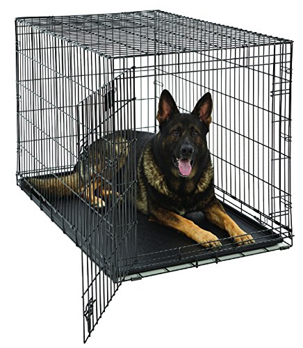 -. Feature : Double door metal dog crate, 48L x 30W x 33H inches / Includes free divider panel, leak-proof plastic pan, carrying handle, rubber feet to protect floors and a 1 year Manufacturer's Warrranty. We manufacture the iCrate and the Life Stages Dog Crate. The main difference is the Life Stages is made of heavier gauge steel and has a tighter wire mesh making it stronger than iCrate. / Two slide-bolt latches securely lock door in place / Dog crate folds flat for convenient storage, travel and portabilitiy / Strong and sturdy structual metal crate design creates a safe place for your pet while you're away