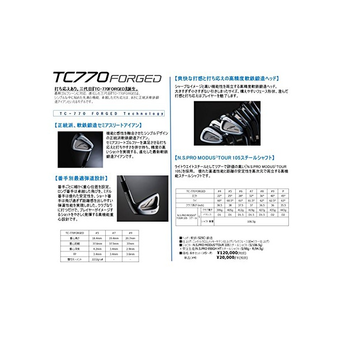 원본상품명: FOURTEEN(フォティン) TC770 FORGED アイアン(品) #4 NSM3105(S) TC770FG3 ロフト角:22度 番手:4I