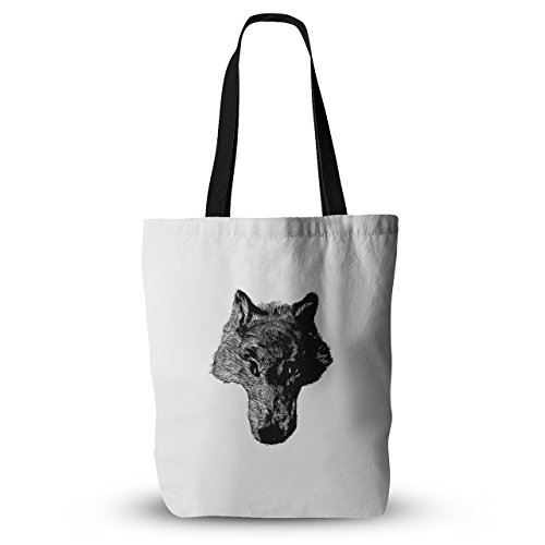 KESS InHouse BarmalisiRTB "Black Coyote" White Everything Tote Bag, 18" x 18", Multicolor