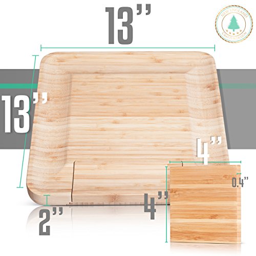 ✔ BEST ADDITION TO EVERY KITCHEN - LARGE (13"x13"x1.5") Natural grain finish with warm bamboo color promises a stunning addition to your home decor. We've also included FREE (4"x4"x0.4") matching set of bamboo drink coasters to complete your serving set!