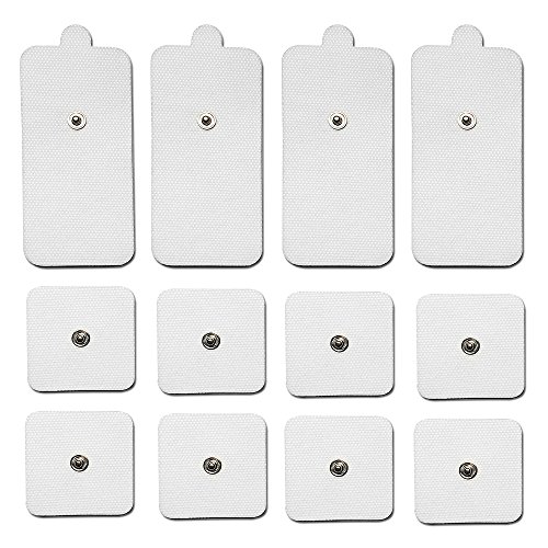 WillHealth 12 Piece Electrode Pads Tens Electrodes Snap on 3.5mm for TENS/EMS Digital Therapy Machine Muscle Stimulator Pain Relief Massager - 8x 2" Square + 4x 2" x 4" Rectangular Massage Pads
