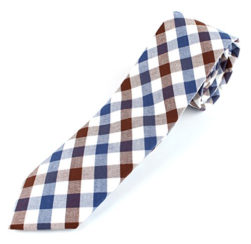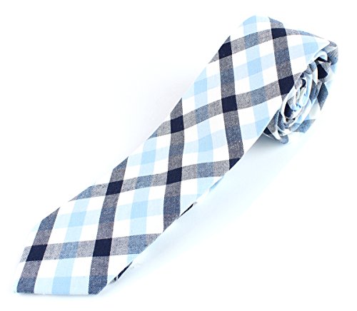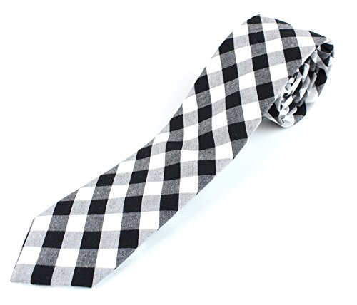 Men's Cotton Skinny Necktie Checkered Gingham Pattern - 2 1/2" Width Tie