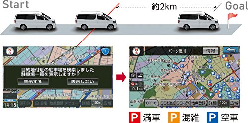 目的地の2キロ手前で5分以内の最新情報にアクセス。目的地周辺の駐車場空き情報を表示。