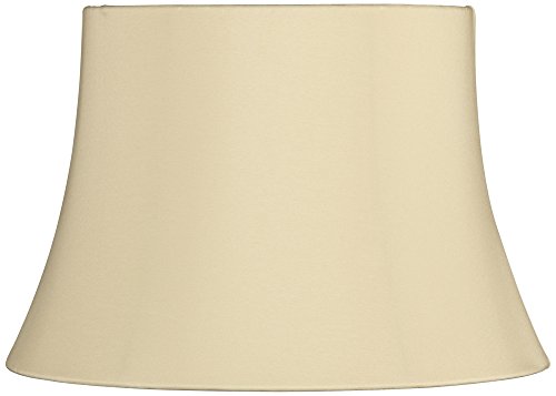 -. Feature : 10" across the top, 14" across the bottom, 9 1/2" on the slant. / Polished brass uno fitter; opening is 1 3/8" wide. / Sand color with white lining and rolled edge. / Polyester fabric. / Softback bell lamp shade from the Brentwood lamp shade collection.