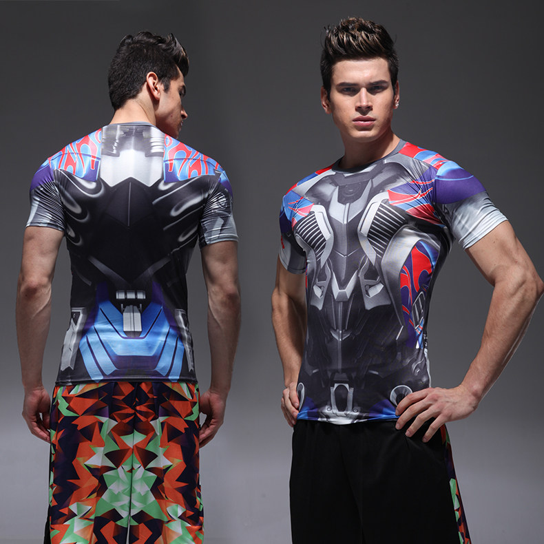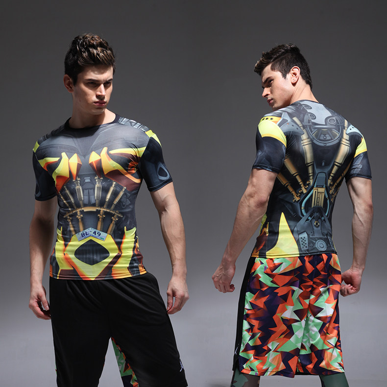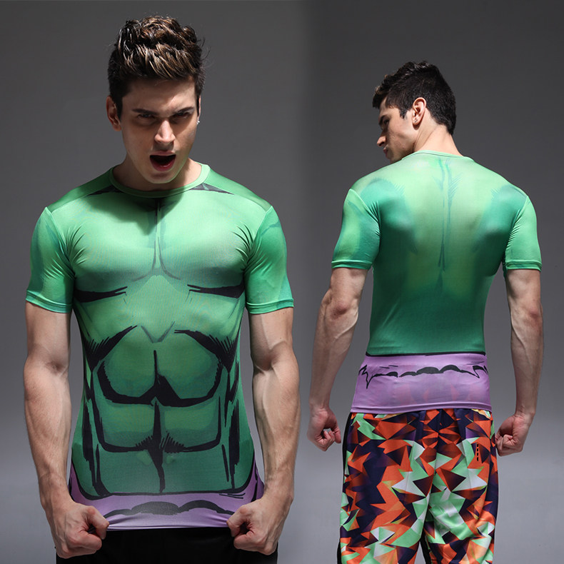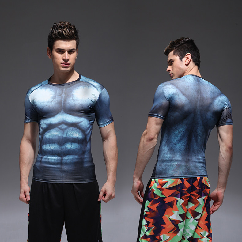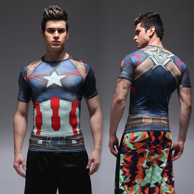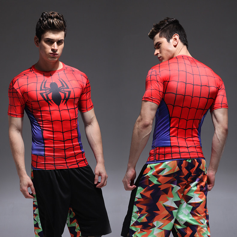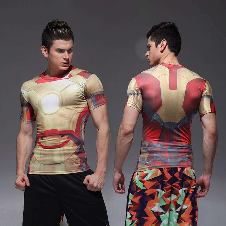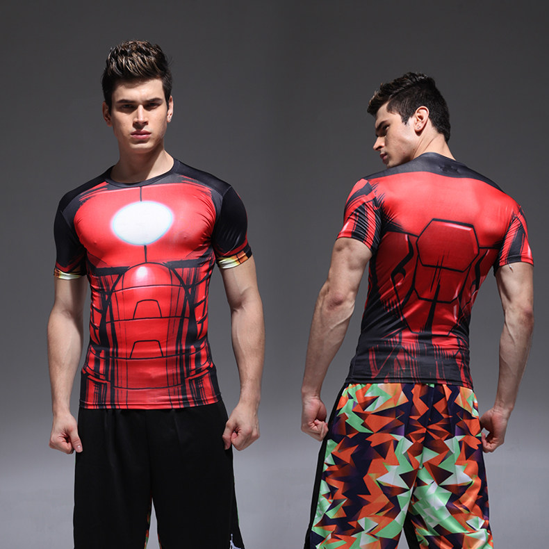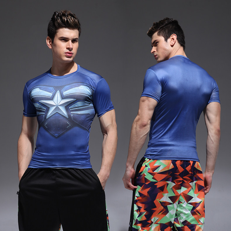 ?超人健身紧身衣钢铁侠美国队长运动短袖速干篮球训练男T恤?
