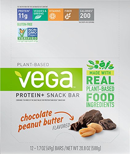 Vega Protein+ Snack Bars Gluten Free, Chocolate Peanut Butter, 1.7oz, 12 Count