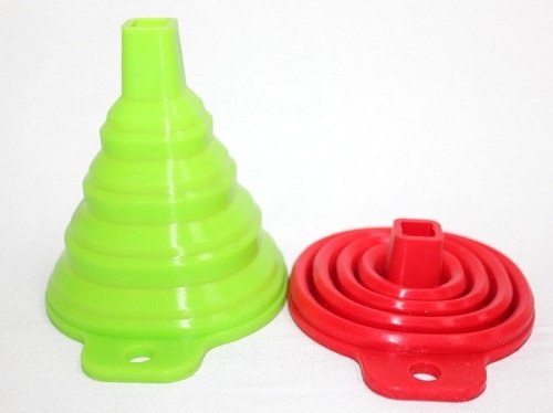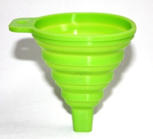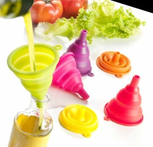 -. Title : Large Plastic Funnels Silicone Funnel Collapsible Kitchen Fold Heat Resistant Oil Water Liquid Kitchen For refilling spray, shampoo, drink 1 Pcs Random Color