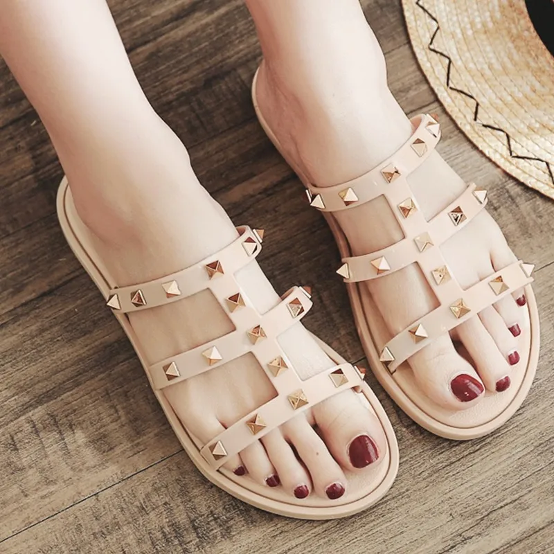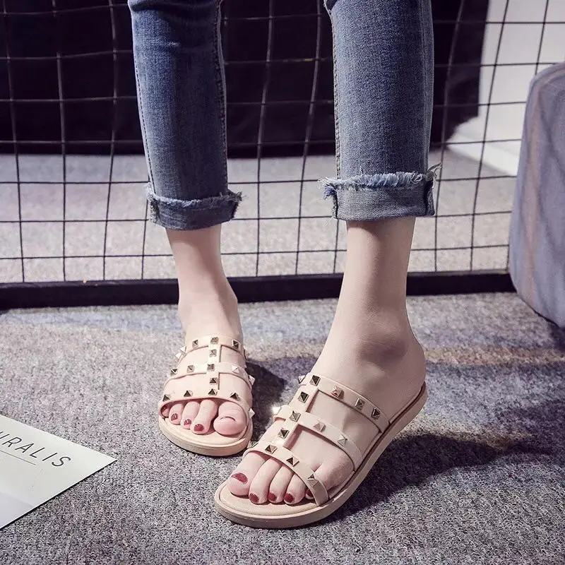 Women Slides Summer Rivet Slippers:Women Cool Shoes Flip Flops Sandals