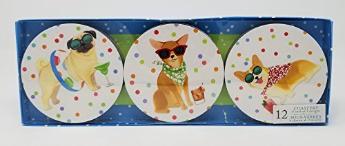 Molly and Rex Set of 12 Coasters - Dog of Summer w/ Drinks and Polka Dots