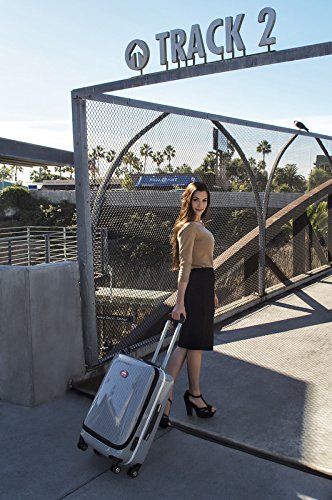 -. Feature : ABS + 2 layers of polycarbonate, patented "front opening" hard shell lage / Size: 22"lx13"wx31.1"h, weight 10.58 1bs. / Internal zipper pockets and Velcro strips / Four multi-direction spinner wheels for effortless rolling / TSA code lock