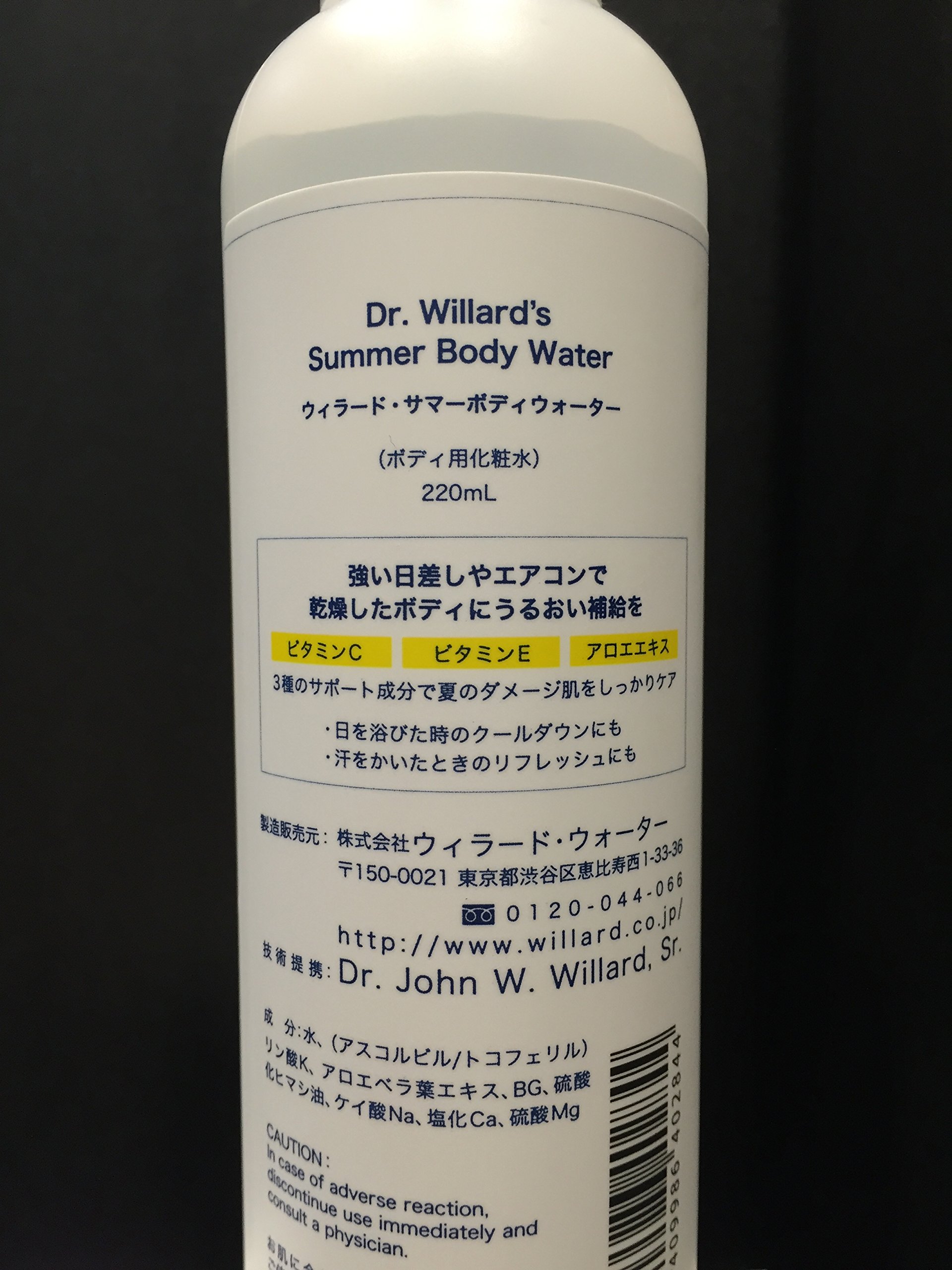 Body water only for summer plus aloe, vitamin C & E; on Willard Water.