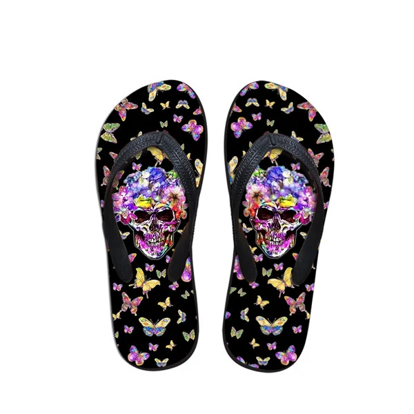 Pattern:3D Cute Skull Butterfly Pattern Women Summer Slippers