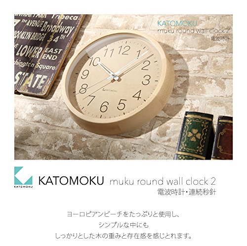 -. Title : KATOMOKU muku round clock 2 電波時計 スイープ(連続秒針)ナチュラル km-45NRC Φ306mm