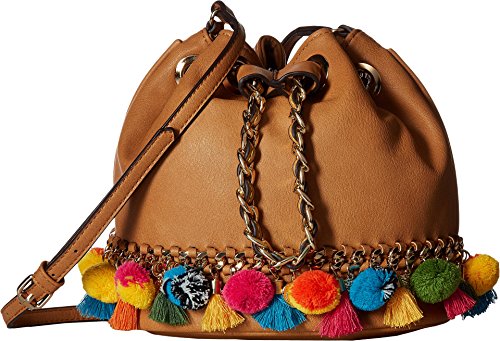 -. Feature : Small novelty bucket bag with mini pom pom / Chain and tassel details.