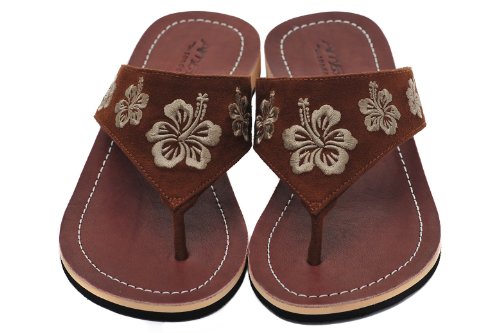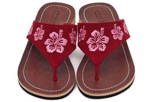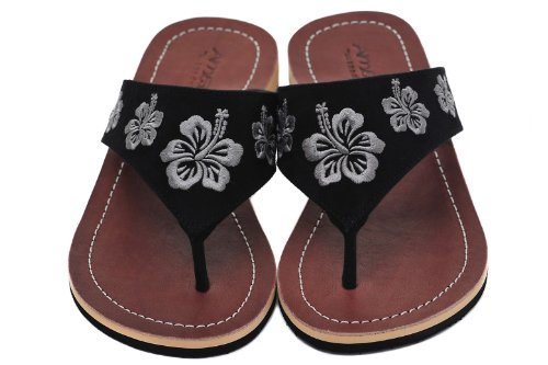 -. Title : Amboss Damen Sandalen mit Echt Leder und Hibiskusblütendesign Gr.37-43