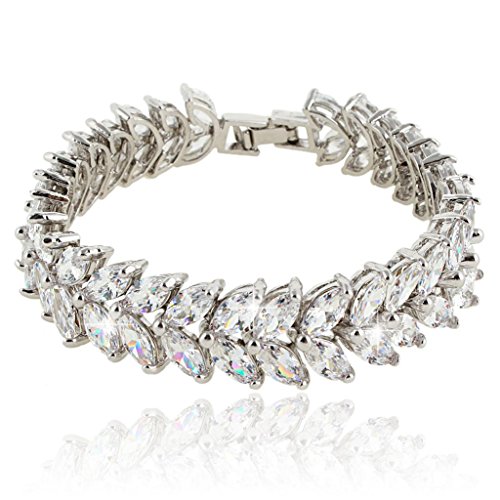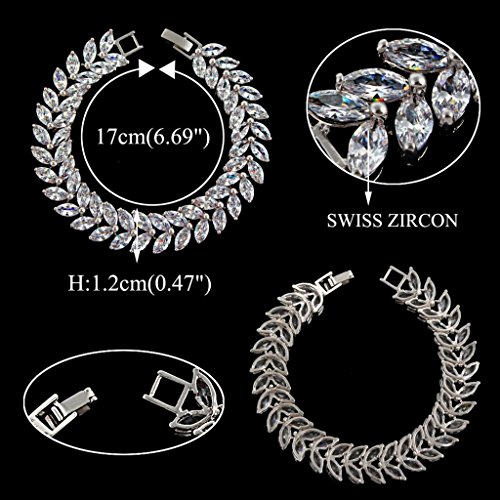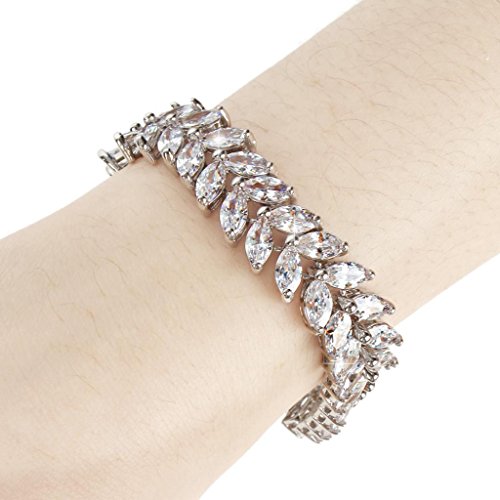 -. Title : EVER FAITH® Silver-Tone Full Cubic Zirconia Prong Shining Leaves Wedding Bracelet Clear
