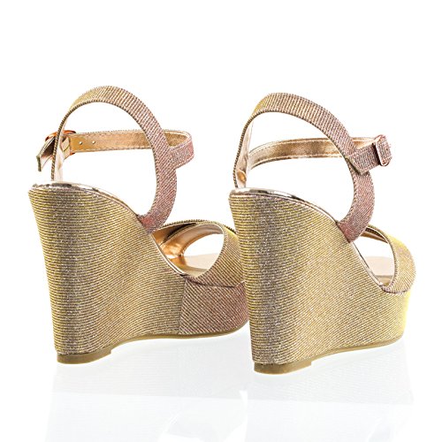 Binding : Apparel Product Description About This Shoes :These platform wedges features thick platform wedge, mesh glitter upper, adjustable ankle strap, and front cross strap. These comes in silver and rose gold, the rose gold shifts color depending on the angle, the silver is solid silver. *these sandals do not come in boxes Brand - Bamboo Colors Available: Rose Gold, Silver Occasion: Formal Shoe Type: Platforms Wedges Shoe Style: Platforms Wedges Inner Lining: synthetic Heel Height In Inches - 4.5 Heel Style - Wedge Toe Style - open-toe Platform Height In Inches - 1.5 Shaft Height In Inches - Circumference Opening - Strap Type - ankle-strap Sole - manmade All Man Made Material unless otherwise stated. Computer/Phone/Table monitors might show color differently because of its quality or calibration, we suggest you look at the photo in at least 3 monitors if you need exact color match of your shoes. 0