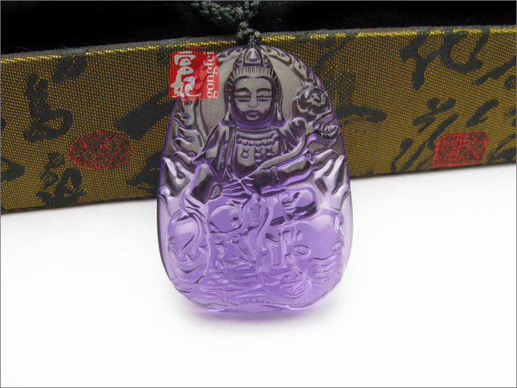 开光 紫水晶普贤菩萨守护神 属龙蛇本命佛吊坠