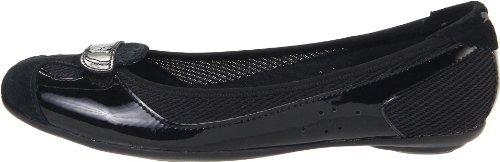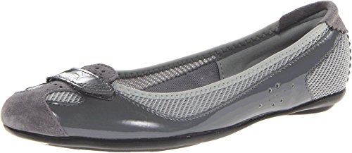 Lightweight ballet flat featuring breathable mesh upper with logoed hook-and-loop strap at toe