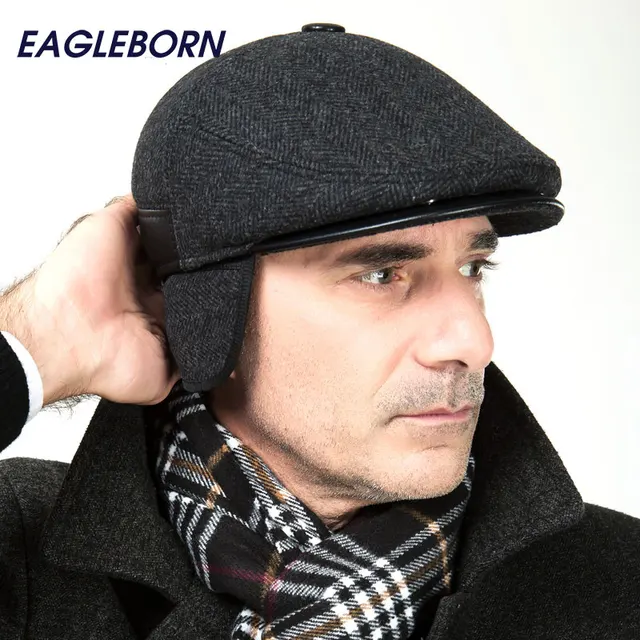 | [해외]2017 브랜드 새로운 겨울 모직 귀 노인 남성 모자 두꺼운 따뜻한 베레모 모자 클래식 디자인 바이저 캡 스냅 백 고품질 |