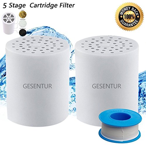 Gesentur Universal 5-Stage Replacement SPA Shower Filter Cartridge with Teflon Tape , Chlorine Shower Head Filter to Reduce Chlorine & Water Impurities by Gesentur (Set of 3) (Shower Filter Cartridge)
