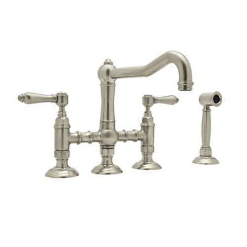 Rohl A1458LMWSSTN-2 Country Kitchen Bridge Style Kitchen Faucet with Sidespray, Satin Nickel