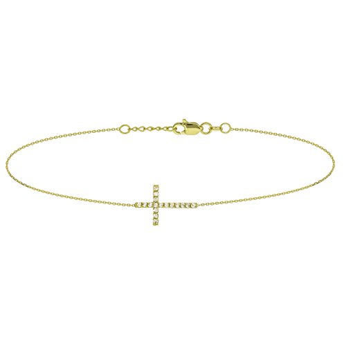 -. Title : 14K Gold Sideways Cross .20cttw Diamond Adjustable Bracelet (H-I Color, I1-I2 Clarity) 7"-7.5"