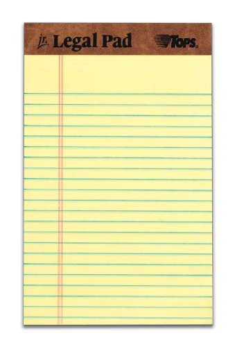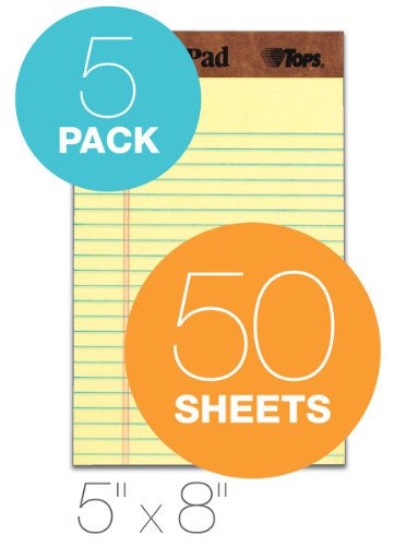 TOPS The Legal Pad Legal Pad, 5 x 8 Inches, Perforated, Canary, Narrow Rule, 50 Sheets per Pad, 5 Pads per Pack (75017)