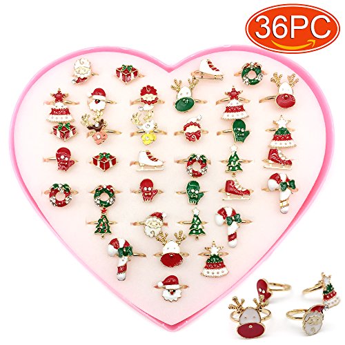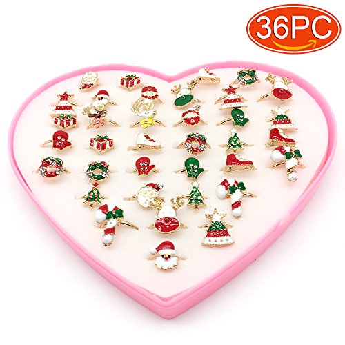 (Elesa Miracle)/Pretend Play Dress-up/Beauty Fashion/DIRECT FROM USA/Elesa Miracle 36pcs Children Kids Little Girl Adjustable Christmas Rings in Box, Random Shape a...