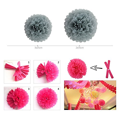 Studio : Hanzen Publisher : Hanzen Binding : Office Product Product Description Main Features:The main features of these pom poms set include: - Totall 5pcs paper flowers poms mixed 2 sizes (10",14") - Hand made using premium paper. - Each pom pom comes with ribbon and instructions. - Pre-cut pieces for easy folding each sheet and fluff into shape to create beautiful and realistic paper flower pom-poms. - Lightweight and easy to hang them from the ceiling, above a table, under the verandah, or from branches in trees. - Perfect for any occasion: Birthday, Wedding, Christening Baby shower, Kitchen tea, Nursery decorations or any other celebration. How to DIY paper flower? 1. Unfold the party ball, fanning out the tissue paper. Ensure the ribbon is centered along the length of paper. 2. Pull on each point of paper at one end of tissue, fluffing each point to the centre of the ball. When all points have been fluffed, this should form half a sphere. 3. Hold party ball by ribbon so as the fluffed part of ball is upside down and start to fluff all points of the other half of the ball. once this step is finished you will have a full arty ball and you can hanging this where you like by the ribbon. The colorful paper flower ball set can embellish your events and decorate your home beautifully, enjoy the gorgeous pom poms! 0