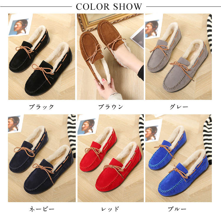 | 秋冬季節で大活躍な裏ボアモカシンシューズ。極上のふわふわファーが、つま先まで!素足で履いてもあったかい♪ベーシックからトレンドまで全6color展開します。楽チンな履き心地、一日中履いても足を疲れさせないソフトなフィット感、足が疲れにくいから歩き回る日にも大活躍! | |