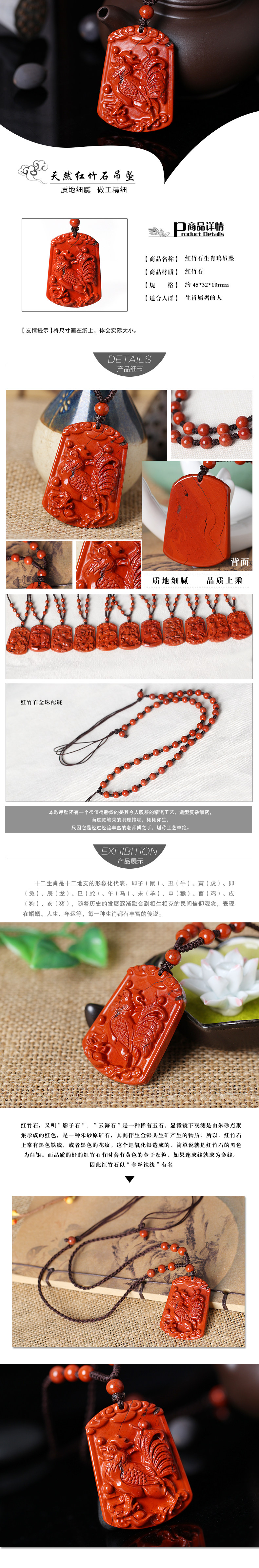 开光正品天然红竹石影子石南红玛瑙十二生肖鸡酉奇辰元吊坠