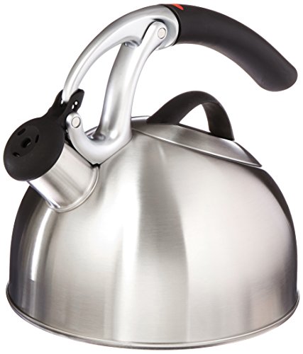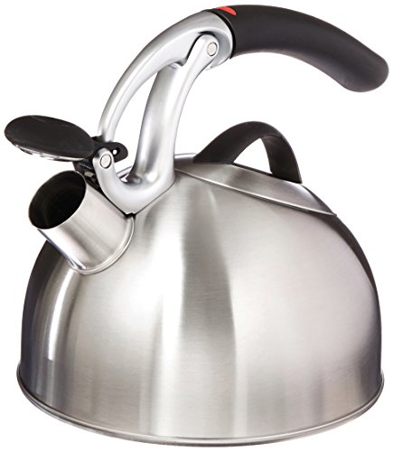 Simply lift the OXO Good Grips Uplift Tea Kettle by its handle and the spout opens automatically! No awkward buttons or levers, just lift and pour! The spout stays in the open position for safe and precise pouring. The soft, non-slip handle is heat-resistant for added safety and a large lid makes the Uplift easy to fill and easy to clean. With a brushed stainless steel finish, this Kettle is attractive, durable and stain resistant. The Kettle has a whistle to let you know when your water is ready and has a 2-quart capacity. Kettle is safe for induction cooktops.Feature
