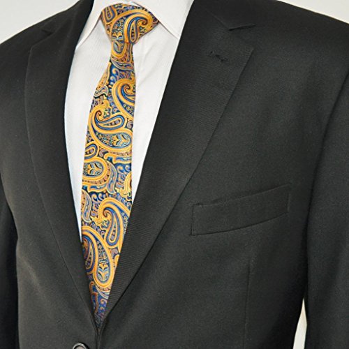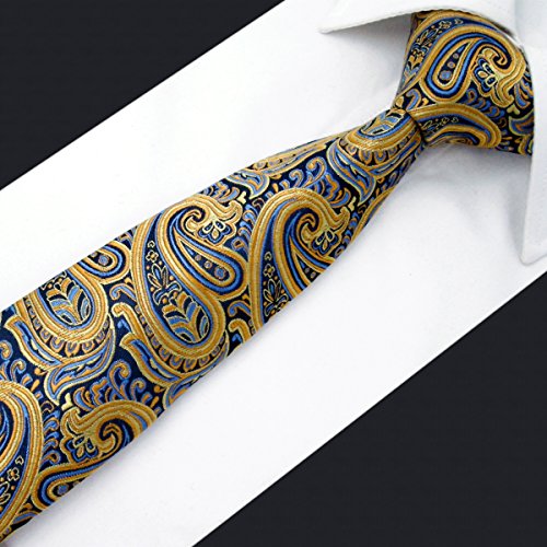 | ShlaxWing Mens Necktie Ties Yellow Blue Paisley Silk New Fashion Wedding |