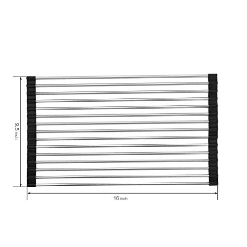 Roll Up Dish Drying Rack In Sink Stainless Steel Kitchen Folding Rack Over Sink Dish Drainer16’’(L)x9.5’’(W)