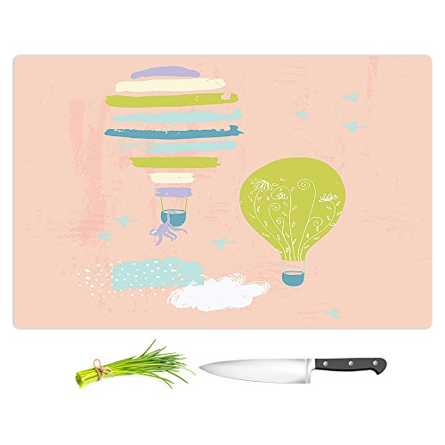 DiaNoche Designs CB-MetkaHitiBalloonsCloudsPink2 Artist Metka Hiti-Balloons Clouds Pink Cutting Boards from, Large 15" x 11"
